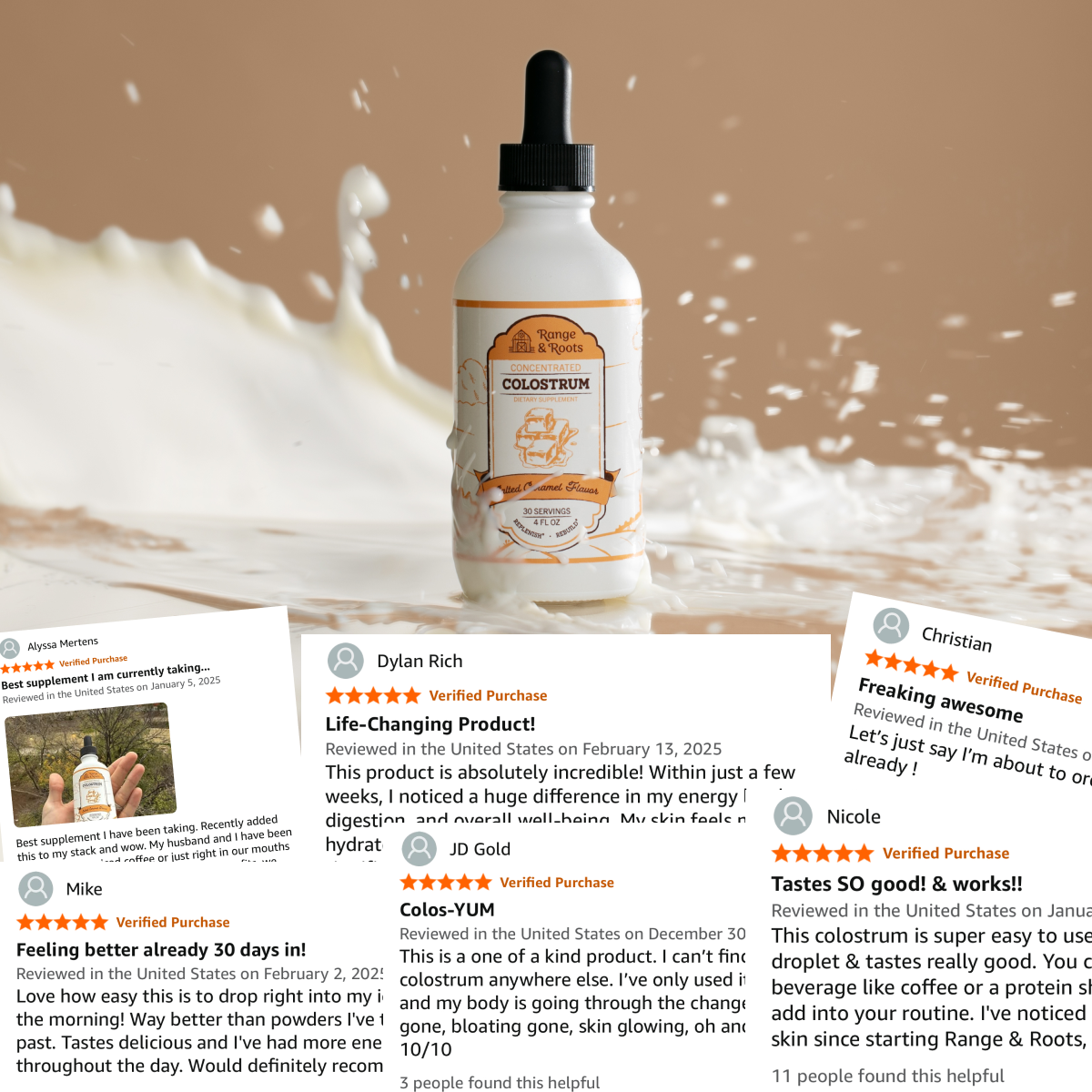 This colostrum is super easy to use with the tincture droplet & tastes really good. You can add it to any beverage like coffee or a protein shake, so it's easy to add into your routine. I've noticed a difference in my skin since starting Range & Roots, and many people have commented saying my skin looks "glowy". I also find that Range & Roots has helped my digestion. It's the perfect thing to add your wellness routine & for a price much lower than competitors, but his quality! Thank you Range & Roots.