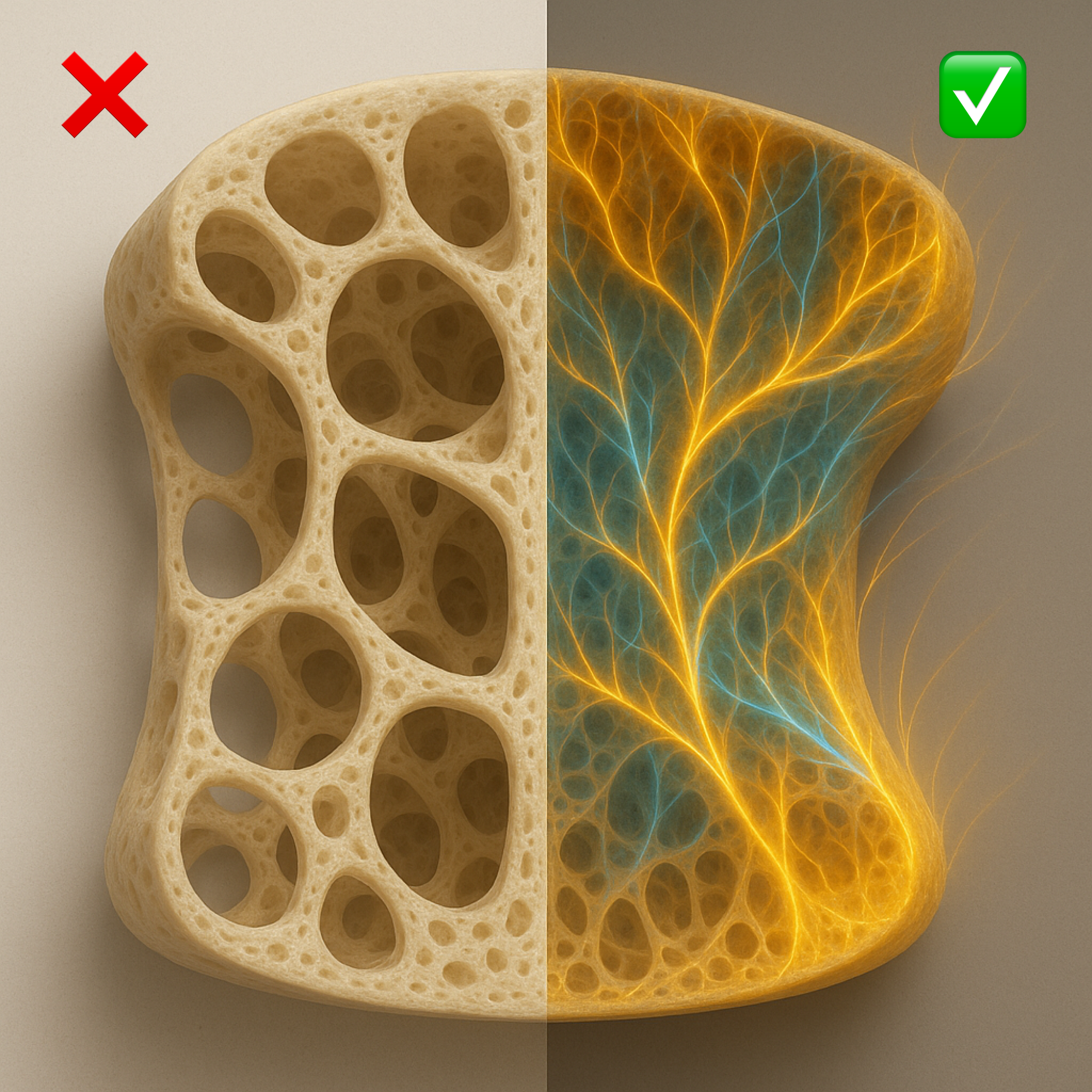 Lactoferrin activates osteoblasts, the cells responsible for building bone, while slowing down the cells that break bone down. Combined with IGF-1, TGF-β, and other growth factors in colostrum, this creates an ideal internal environment for supporting bone density, structure, and long-term skeletal strength. Think of it as giving your frame the raw materials and signaling molecules it’s been missing.